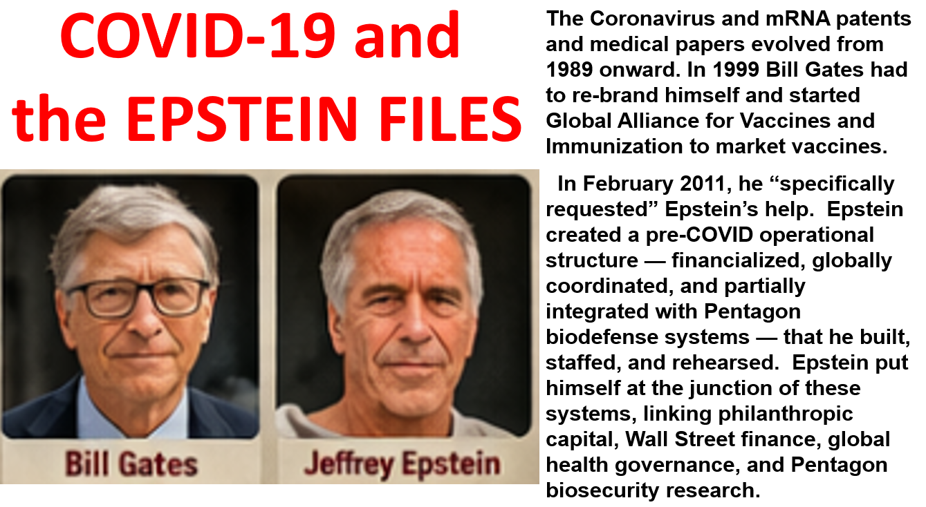 After several of Gates’ vaccine failures in India that caused great harm and death, the Parliament of India kicked out the Gates Foundation. Bill Gates had the resources to work with anyone to promote vaccines, but as early as February 17, 2011 he “specifically requested” Jeffrey Epstein, a registered sex offender. As the Coronavirus and mRNA patents and scientific / medical papers evolved from 1989 onward, the Epstein Files, released by the Department of Justice on January 20, 2026, show how, when, and with whom Epstein opportunistically interwove and created a pre-COVID operational architecture linking Wall Street finance (JPMorgan), philanthropy, global health governance, and Pentagon biodefense research, rather than public health officials.